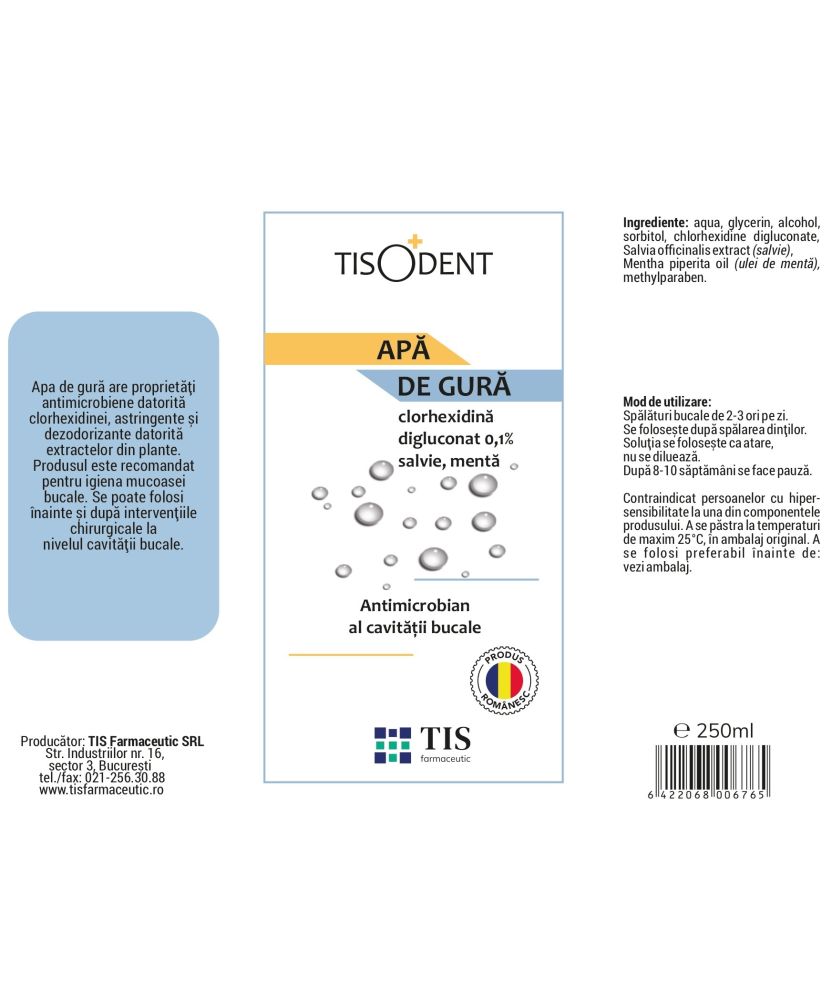 Recomandată pentru igiena zilnică a mucoasei bucale și ca adjuvant în afecțiuni asociate florei bacteriene din cavitățile bucală și orofaringiană.