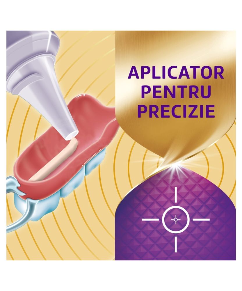 Corega Max Sigilare are un aplicator nou, special conceput pentru aplicarea unei cantitati precise de crema adeziva pe proteza dentara.