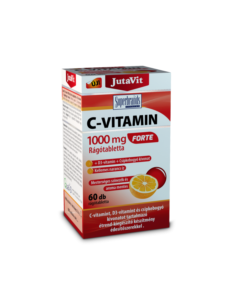 JutaVit Vitamina C 1000 mg Forte + D3 + Extract de Acerola, 60 Tablete Masticabile